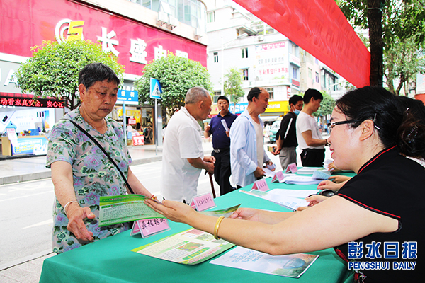 中國彭水網(融媒體記者 向玉婷 攝影)6月17日,縣林業局在縣城十字街組織開展“2020世界防治荒漠化和干旱日宣傳活動”。通過制作展示宣傳展板,散發宣傳單,懸掛宣傳橫幅等方式,向廣大市民講解關于荒漠化及干旱的現狀及危害、防沙治沙方法、保護生態環境重要性等方面的知識,讓市民強化環保綠色意識,認識到保護珍惜土地資源和水資源對人類生存和發展的重要性。