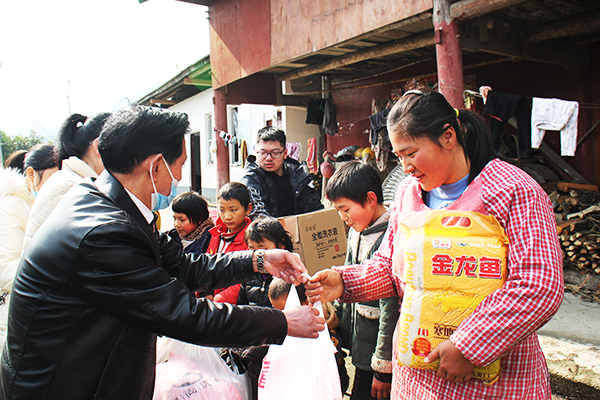 中國彭水網(融媒體記者 任 會 攝影)2月5日,縣家庭教育研究會和漢葭街道商會婦聯一行人先后來到漢葭街道大樹村和青龍社區貧困戶王文明和譚會成兩個家庭,給他們送上被子、大米、食用油等生活用品,鼓勵他們要勇于克服困難,對生活要有信心。