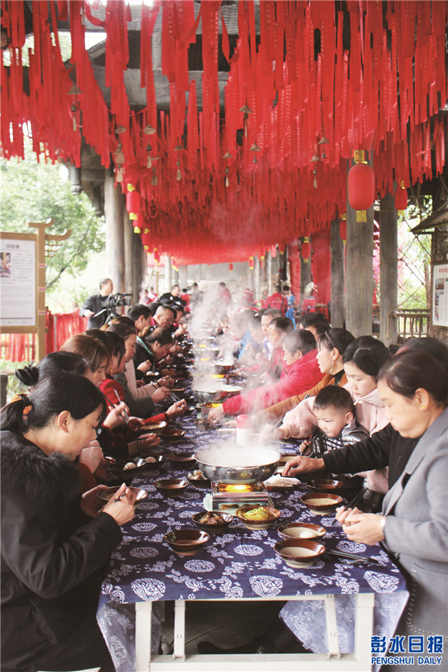 一碗熱騰騰的湯圓,是元宵節中必不可少的節日元素?;顒友埇F場的觀眾一起包湯圓,待湯圓紛紛下鍋,長桌宴也開席了!大家圍坐板桌邊,吃著一碗碗熱騰騰的湯圓,體驗著傳統文化魅力,營造喜慶祥和的節日氛圍。