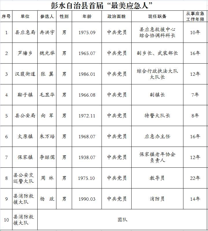 彭水自治縣首屆“最美應(yīng)急人”