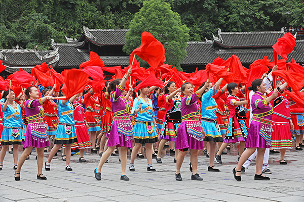 “每年都參與了這一天的盛會(huì),今年是建黨100周年,意義不一樣,特別開(kāi)心。”譚明菊是湖北人,今年是她嫁到彭水的第十一年,每一年的踩花山節(jié)她都參與,“以往是作為表演嘉賓在現(xiàn)場(chǎng)跳舞,今年作為觀眾觀看表演,場(chǎng)面恢弘大氣,感覺(jué)更加激動(dòng)人心。”