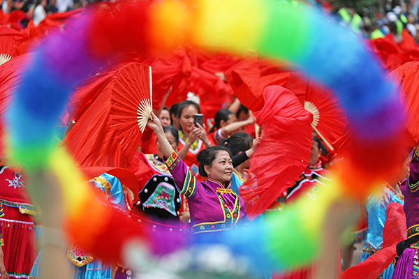 能歌善舞的苗鄉(xiāng)兒女,載歌載舞,以這樣浪漫的形式,衷心祝愿祖國(guó)越來(lái)越美好。