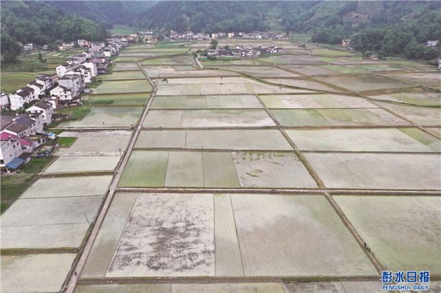 重慶彭水網(融媒體記者 陳興盛 黃智宇 張茂玉 攝影)6月1日,長生鎮長生社區1300余畝高標準農田建設項目已基本完工,稻田里村民三三兩兩在田間勞作,現場一派繁忙。據介紹,長生鎮共有高標準農田建設項目4000余畝,其中長生社區有1300余畝連片水田,通過建設耕作道路、灌溉渠、排水渠等基礎設施,將原先高低不平的田地改大、改平、改直,大大提高了生產效率,減少村民耕作的投入。