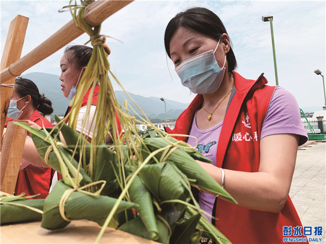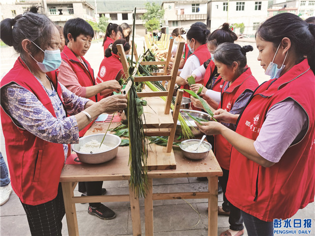 6月8日,端午節來臨之際,由中國社會福利基金會、騰訊公益慈善基金會支持建設的新田鎮馬峰社區“為村暖心服務站”與重慶三峽銀行彭水支行組織當地社區居民開展包粽子比賽,豐富社區居民生活,慶祝端午佳節。
