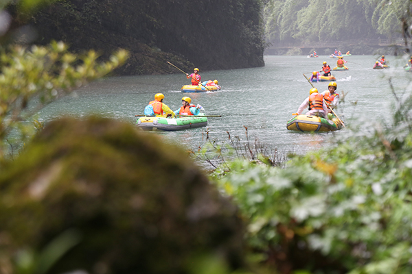 在彭水,苗族民歌以口口相傳的方式流傳千年,曲風或高亢嘹亮,或清脆婉轉,歌者在山水間歌唱,也歌唱著苗鄉的山水。而竹筏放歌、峽谷聽音,已成為阿依河景區核心旅游產品,吸引了不少游客慕名而來。