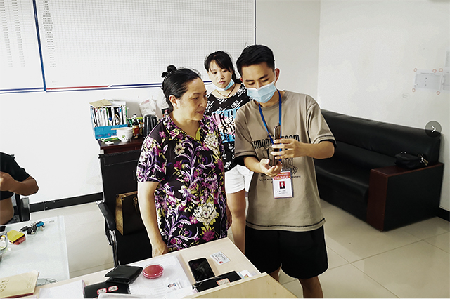 工作人員為卿女士進(jìn)行網(wǎng)上業(yè)務(wù)辦理。 通訊員 向波蘭 攝影