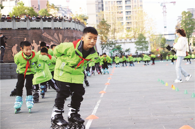 學生們在練習輪滑。 融媒體記者 張 影 攝影