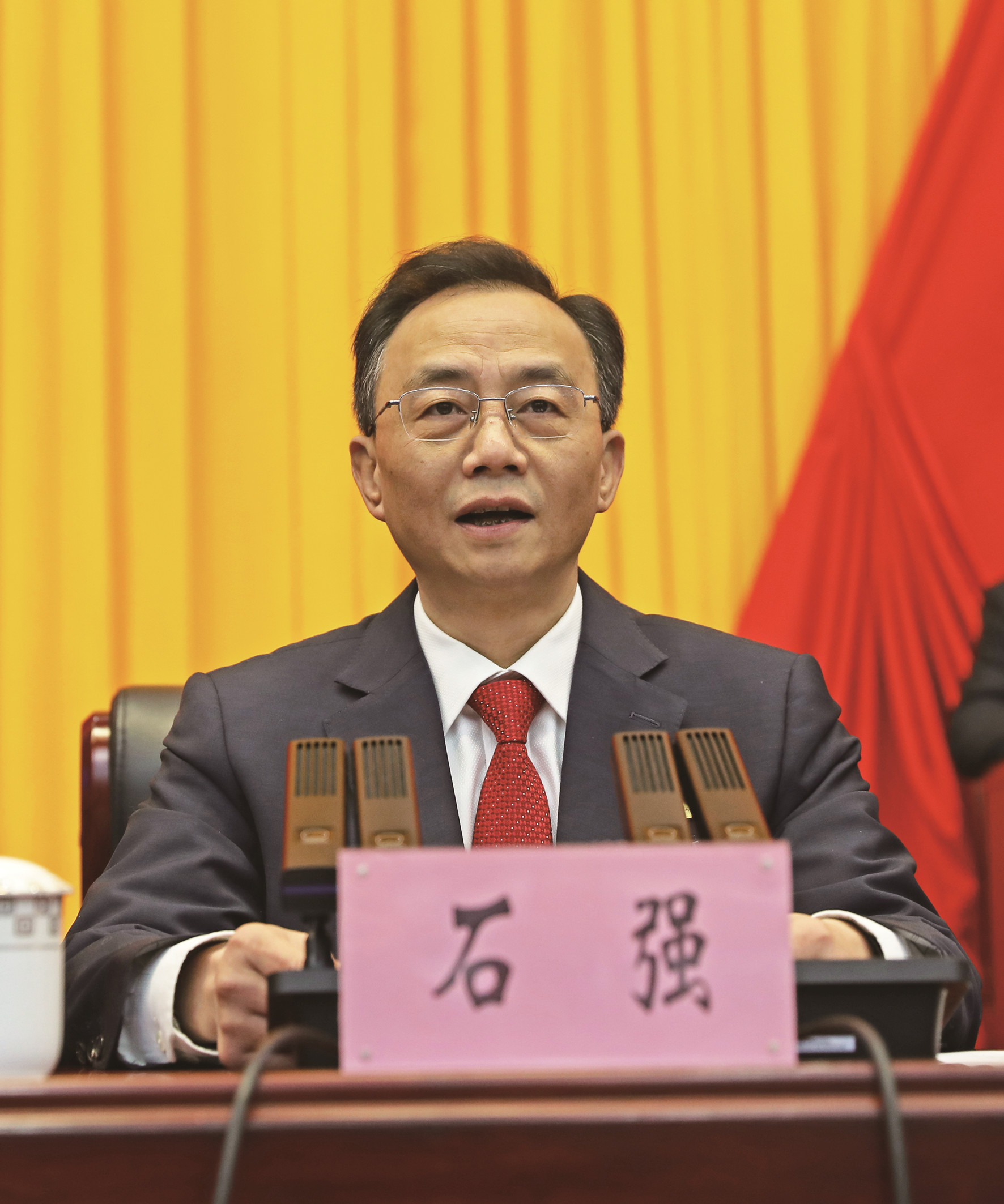 大會主席團常務主席石強主持大會,大會主席團常務委員會成員陳清松、羅道書、蔣孟軒、王兵、裴煜宇、王凡鵬、王露波、譚毅力、楊建華、馮吉光在主席臺前排就座。