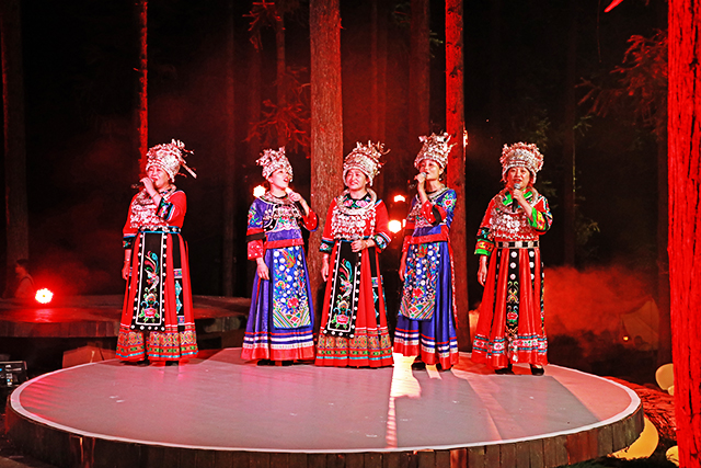 本屆森林音樂季結(jié)合“世界苗鄉(xiāng)·養(yǎng)心彭水”品牌,依托“民族、生態(tài)、文化”三張名片,以“養(yǎng)心彭水夢·同源苗鄉(xiāng)情”為主題,以摩圍山森林場景為舞臺,通過戶外音樂會的形式,將交響樂與彭水縣為主及武陵山地區(qū)其他區(qū)縣為補充的民俗歌舞傳唱融于一體,實現(xiàn)高雅藝術(shù)與民俗文化的交融詮釋,創(chuàng)新區(qū)域文化演藝表現(xiàn)手法。