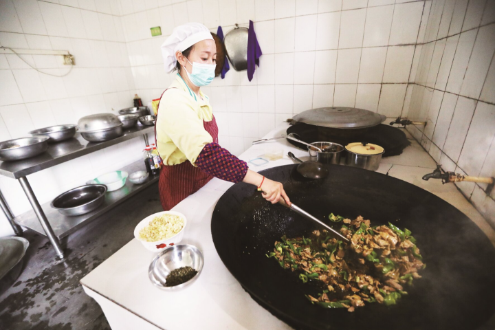 桑柘鎮(zhèn)楠木村小食堂員工正在準備午餐。
