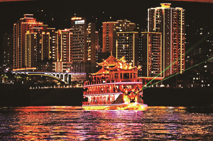 市民乘坐游船觀看彭水夜景。