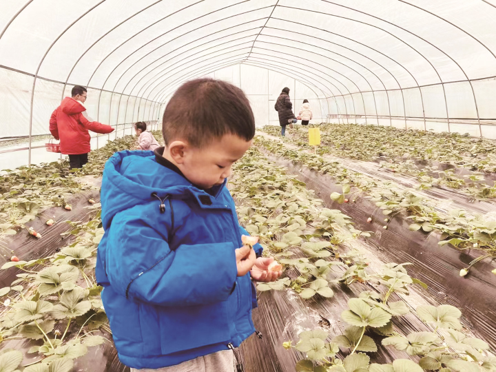 游客正在摘草莓。