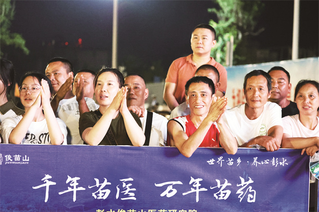 重慶彭水網(首席記者  趙勇  記者  冉江陵  楊麗媛  攝影)7月18日晚,“世界苗鄉·養心彭水—茶韻保家·和美鄉村”暨首屆“彭水白茶品鑒節”開幕?;顒臃譃椤安琛表嵎曳?、“茶”舞翩躚、“茶”歌飛揚三個篇章展開,演員們為現場觀眾帶來了舞蹈、魔術、雜技、民樂表演、脫口秀、號子、流行歌曲串燒等節目,精彩紛呈,掌聲不斷。