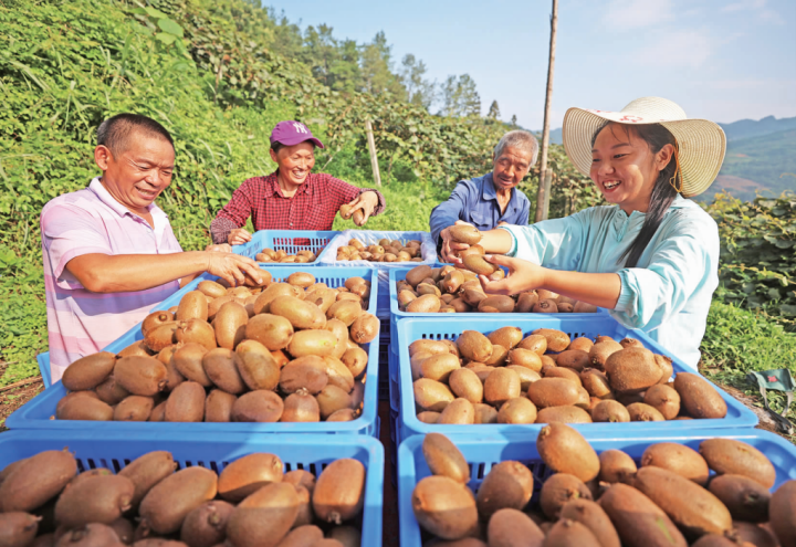 近日,在善感鄉(xiāng)農(nóng)綱村,村民們正將獼猴桃裝上農(nóng)用車輛運出基地,樂享豐收的喜悅。