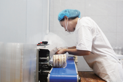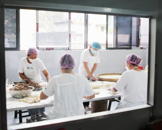 9月14日,在郁山鎮(zhèn)戴記食品工廠里,工人們正在搟酥、包餡、上芝、烘烤,制作傳統(tǒng)手工搟酥餅。