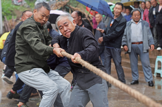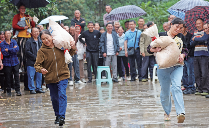 當(dāng)天,通過(guò)舉行手工玉米脫粒、搬運(yùn)糧食、“夫妻互背”、拔河、踢毽子、掰手腕等豐富多彩的趣味活動(dòng),吸引當(dāng)?shù)?00余名村民歡聚一堂,通過(guò)參與各種趣味活動(dòng)慶祝豐收。