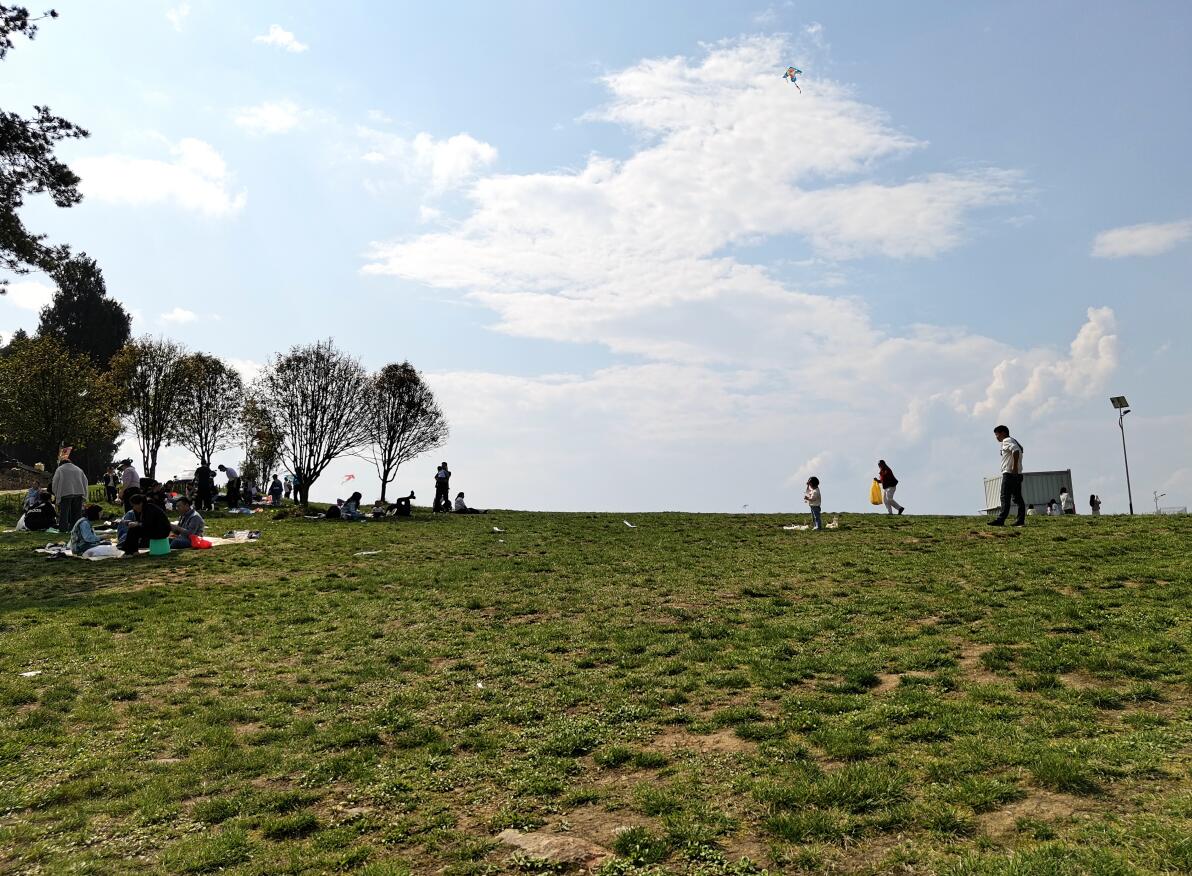 近期,隨著天氣變暖,市民朋友選擇外出打卡,感受春天的氣息。圖為近日,市民在漢葭街道北斗星空草場露營、放風箏,盡享春天的美好。