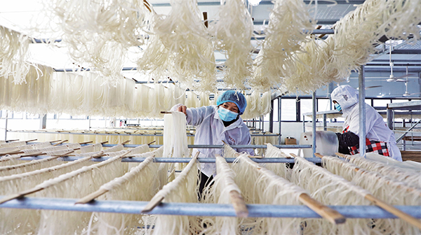合作社用山泉水進行苕粉的生產加工,加工出來的紅薯淀粉純度白、亮度高、品質好,苕粉細膩,入口軟、糯、香、滑,深受顧客喜愛。