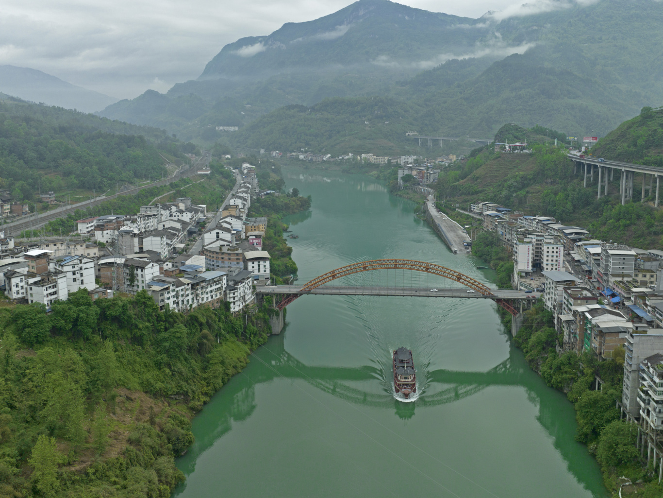 游船航行在烏江上,與青山、碧水、橋梁、建筑等共同構成一幅幅美麗的鄉村畫卷。