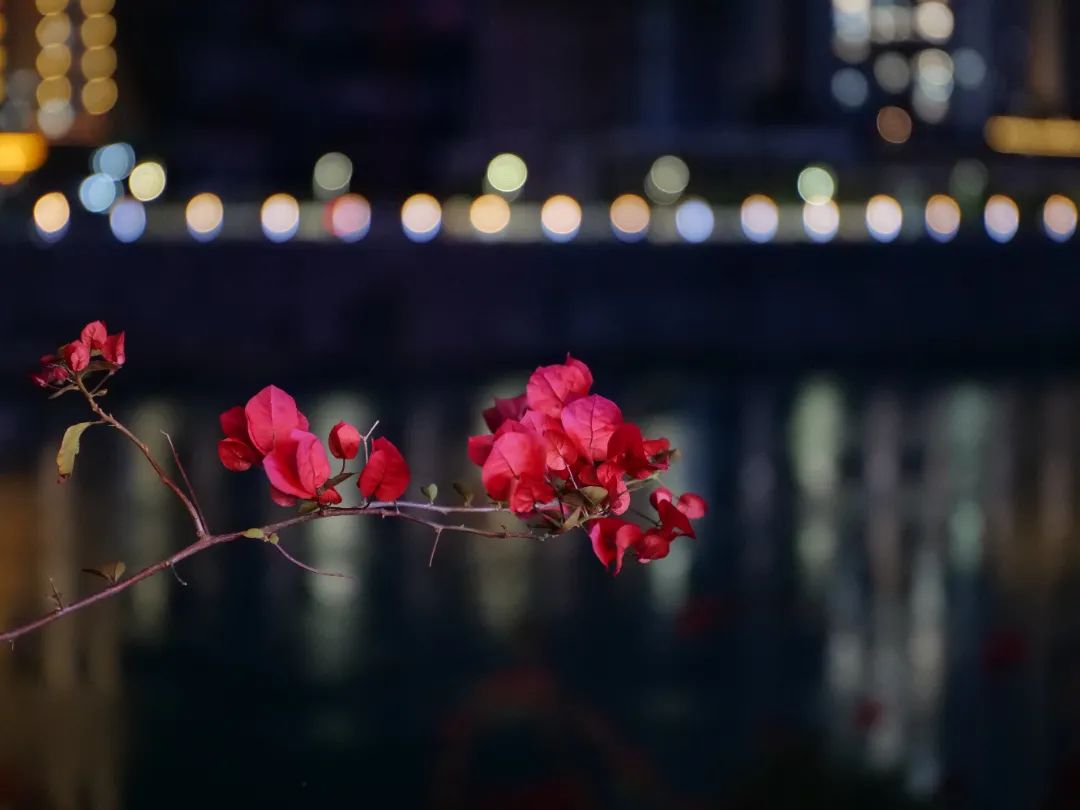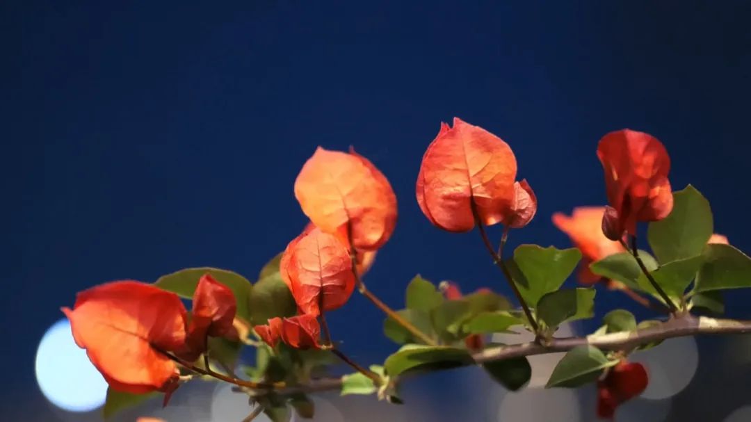 夜幕降臨,城市的喧囂漸漸退去,三角梅在黑暗中綻放出獨(dú)特的美麗。