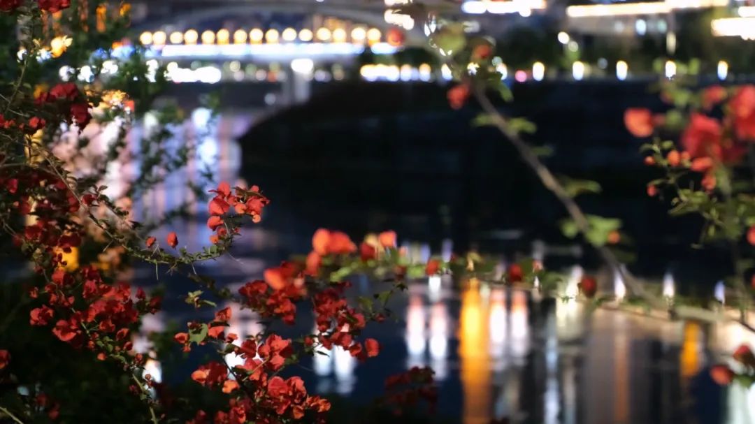 遠(yuǎn)遠(yuǎn)望去,三角梅與江水相互映襯,構(gòu)成了一幅美麗的畫(huà)卷。