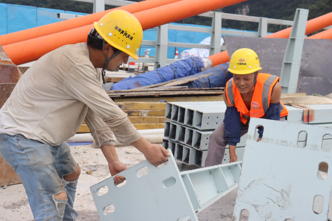 磨寨烏江特大橋為渝湘復線高速彭水至酉陽段重點控制性工程,6月14日,大橋順利實現合龍,標志著渝湘復線高速公路彭水至酉陽全線貫通。渝湘復線高速公路磨寨烏江特大橋安監部部長付云羲介紹,這個月底要完成橋面附屬工程任務,時間緊任務重,工地采取“做兩頭休中間”施工制度,同時準備了充足的防暑藥品,以及綠豆湯、西瓜等,供工人隨時補充水分。