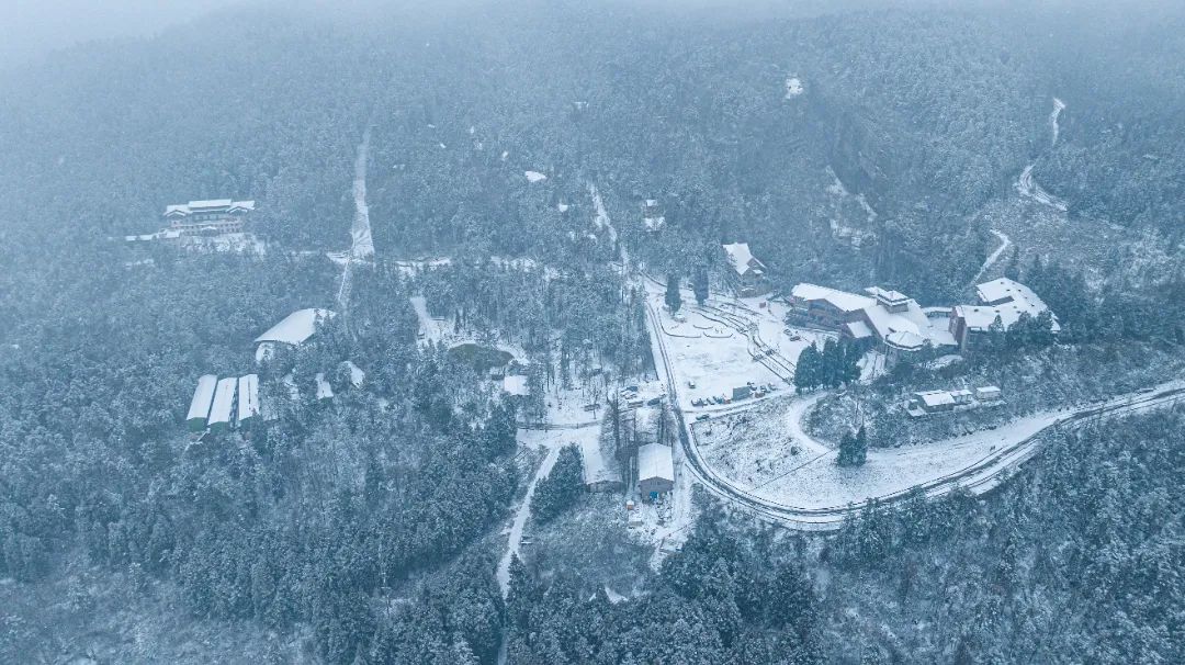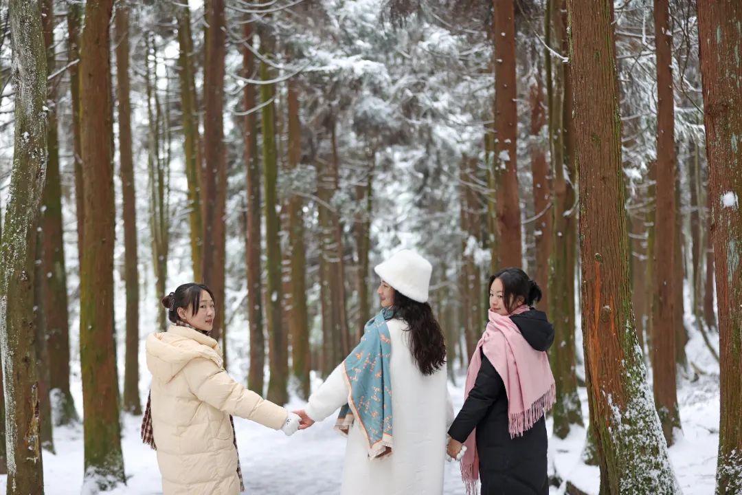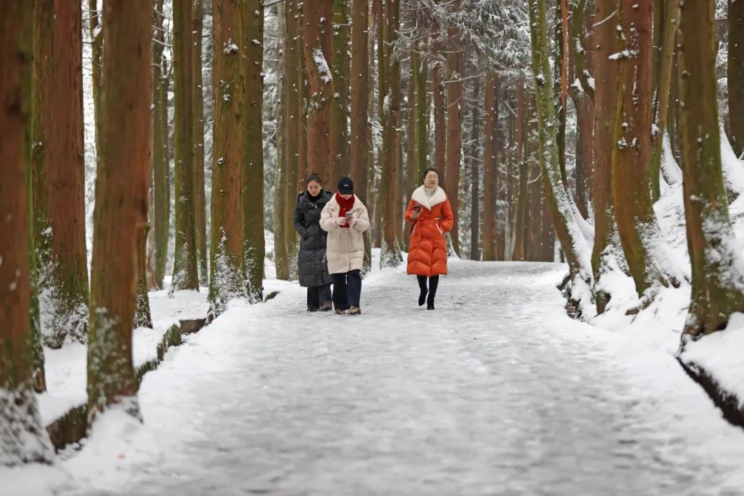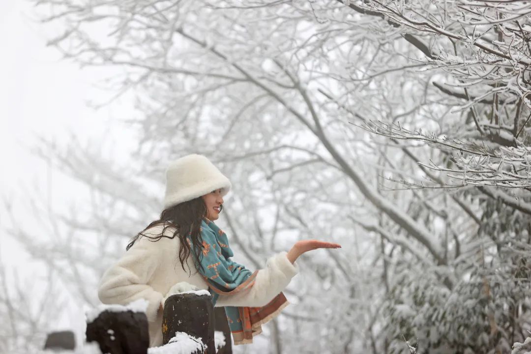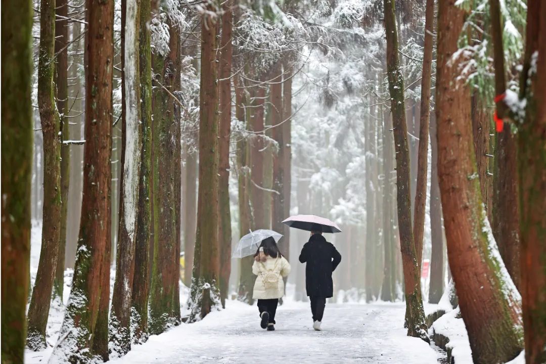 2025年1月8日,隨著近日氣溫持續(xù)走低,彭水高海拔地區(qū)下起了今年第一場瑞雪,到處一片銀裝素裹,蒼茫山景瞬間就化作冰雪世界。圖為游客正在摩圍山景區(qū)游玩。