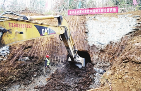 重慶彭水網(記者:李運釗) 1月14日,在位于梅子埡鎮佛山村的老寨水庫引水隧洞工程施工現場,隨著項目施工負責人發布開掘指令,隧道掘進機和挖掘機一邊鉆探一邊掏挖、兩頭施工,頃刻間,隧洞內白色的水汽伴隨著巖石撞擊的火花從挖掘機的鏟斗下升騰開來,標志老寨水庫引水隧洞順利貫通。